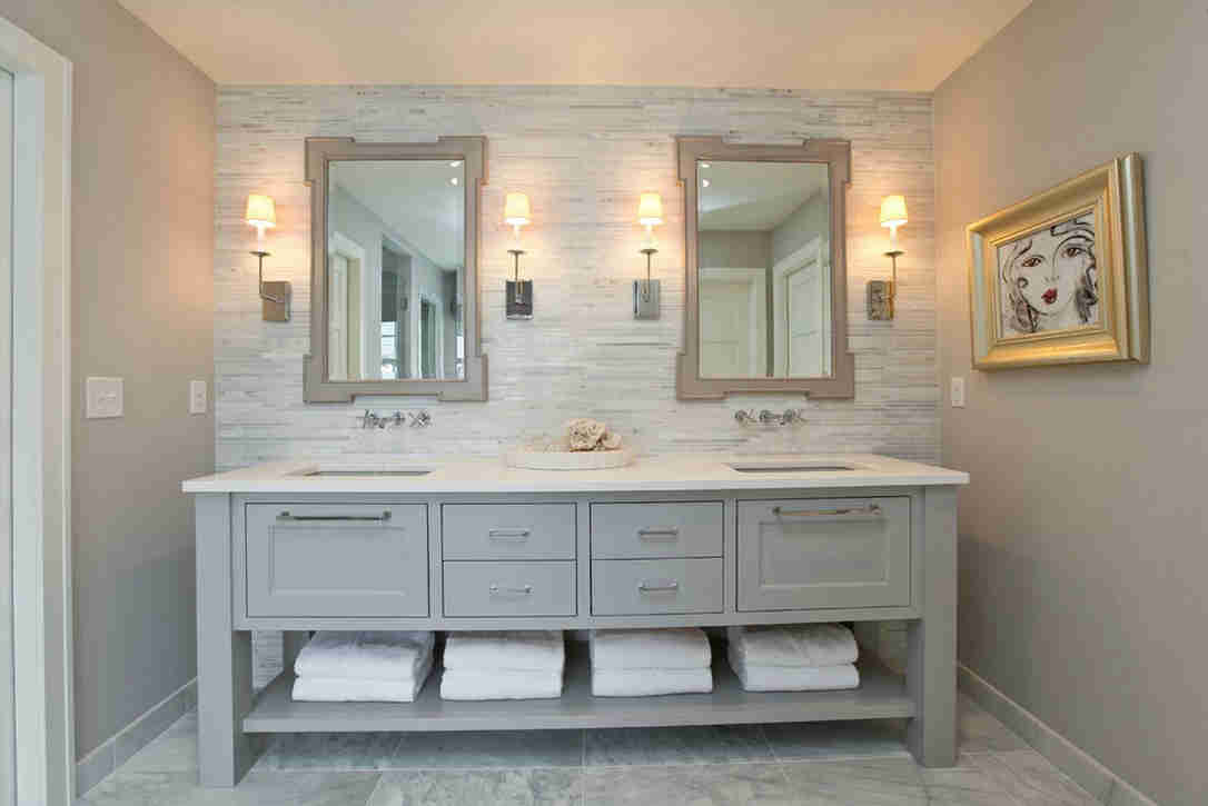 具體做法:衛浴間里裝上兩面甚至三面墻上裝鏡子,其反光效果使空間通透敞亮。