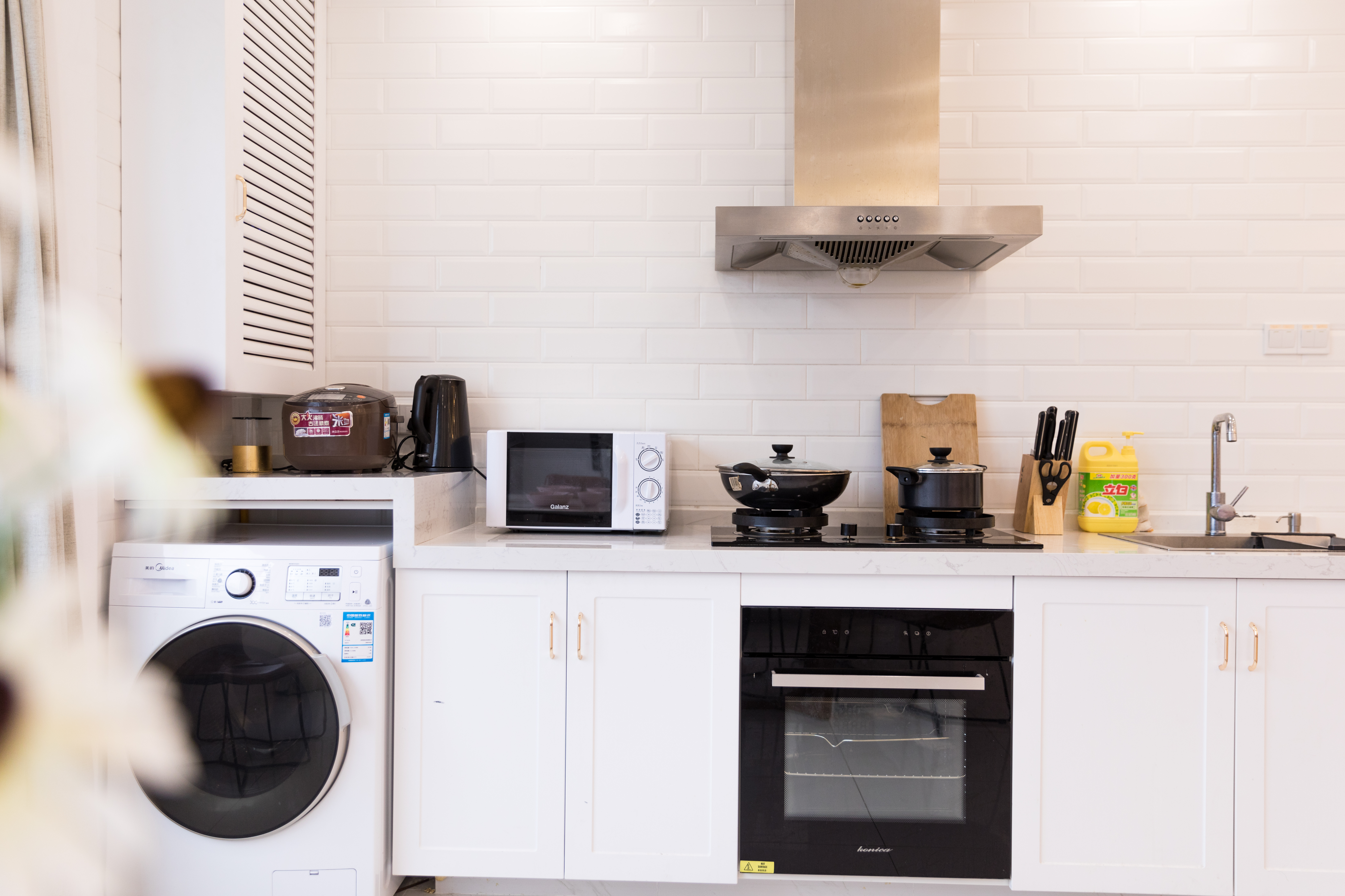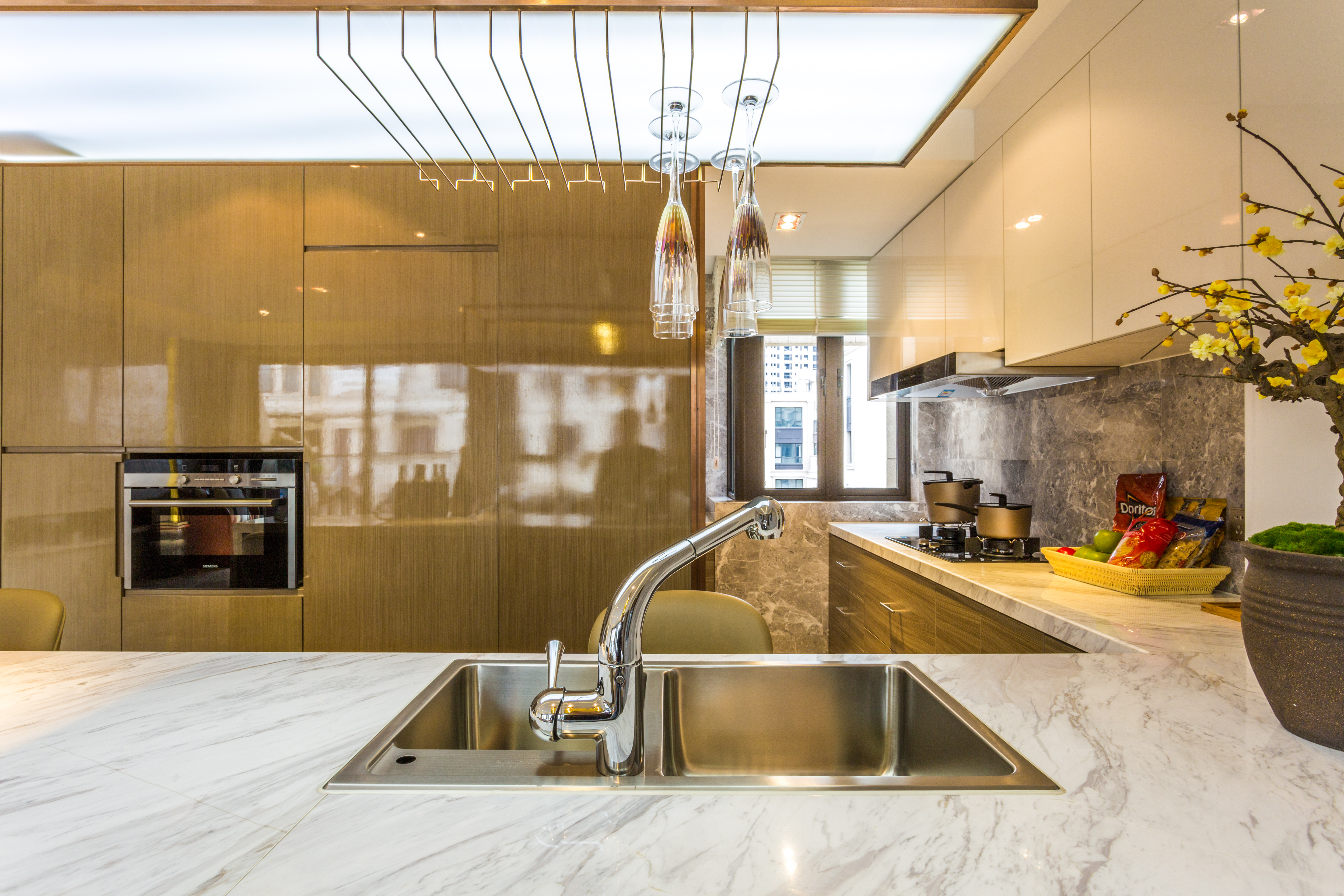 現(xiàn)在城市的水質(zhì)很多達(dá)不到飲用標(biāo)準(zhǔn),為了家人的健康,最好在櫥柜臺盆下方裝一個雙重凈水裝置,水經(jīng)過過濾可以保障家人更多飲水安全。如果空間足夠可以考慮預(yù)留一個空間用來設(shè)計一臺智能洗碗機,方便你享受飯后的輕松快感。